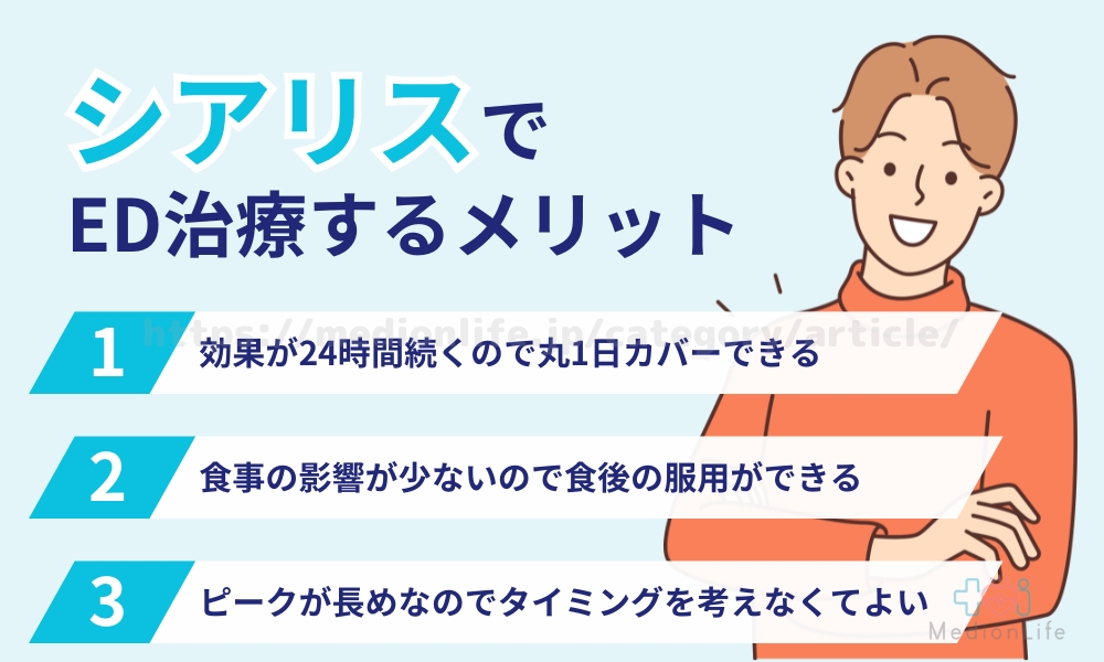 具体的にどのようなメリットがあるのか、シアリスを使用する3つのメリットを解説します。
