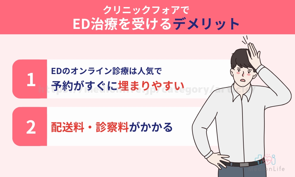 今回は、クリニックフォアのEDオンライン診療についてご紹介しました。