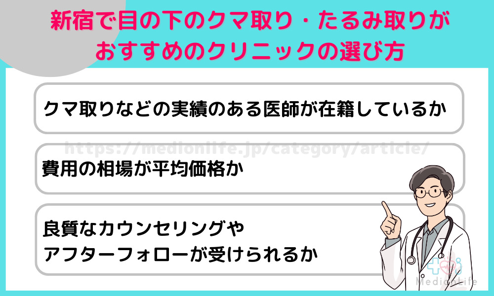 新宿で目の下のクマ取り・たるみ取りがおすすめのクリニックの選び方
