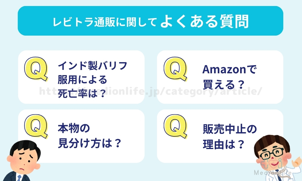 ここでは、レビトラに関するよくある質問を4つ取りあげ、それぞれの疑問にお答えします。
