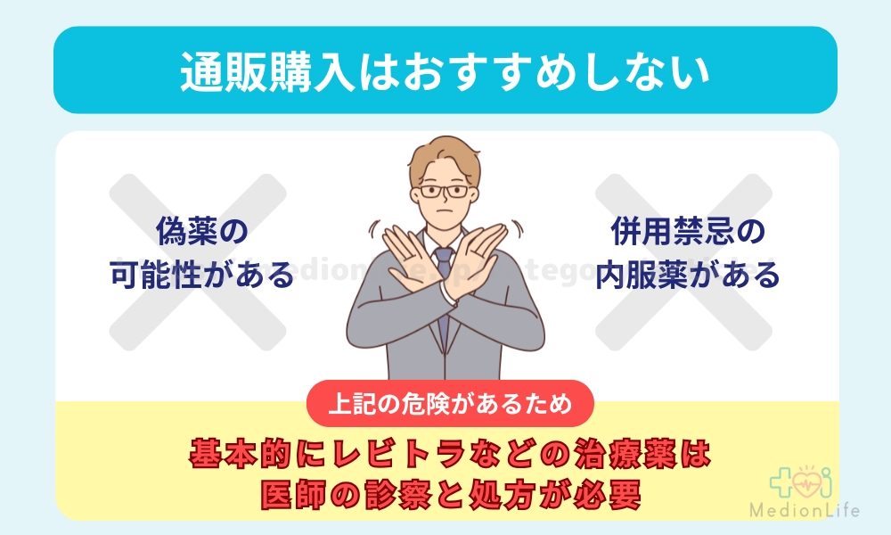 レビトラの通販購入を推奨しないのは、医師に処方してもらう方がメリットが大きいからです。