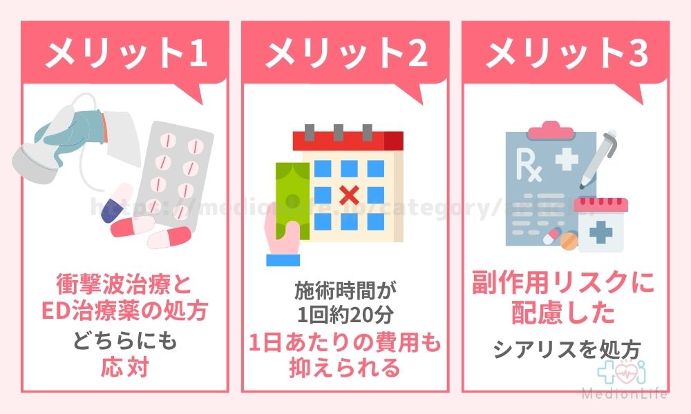 ED治療薬が内服できない患者でも、治療を受けられる点はメリットです。