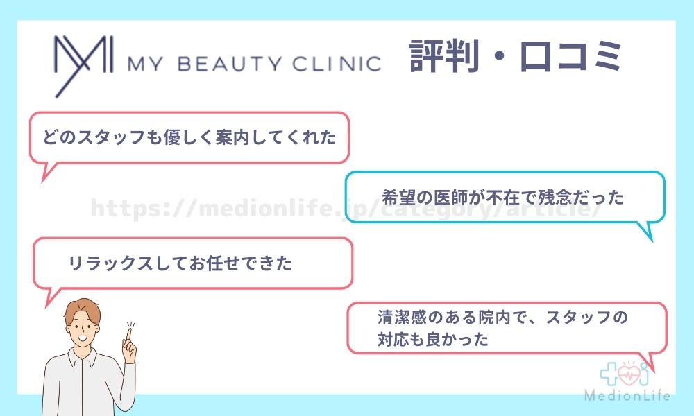 ここでは、MYビューティクリニックの口コミをいくつかピックアップしてご紹介します。
