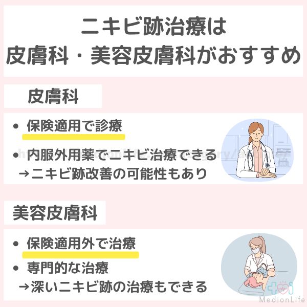 ニキビ跡を治したいけれど、具体的にはどこで治療を受けたらいいのかわからない人は多いのではないでしょうか。