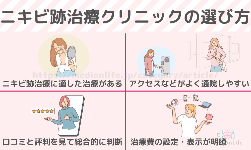 ここでは、ニキビ跡治療のためのクリニックの選び方をご紹介します。