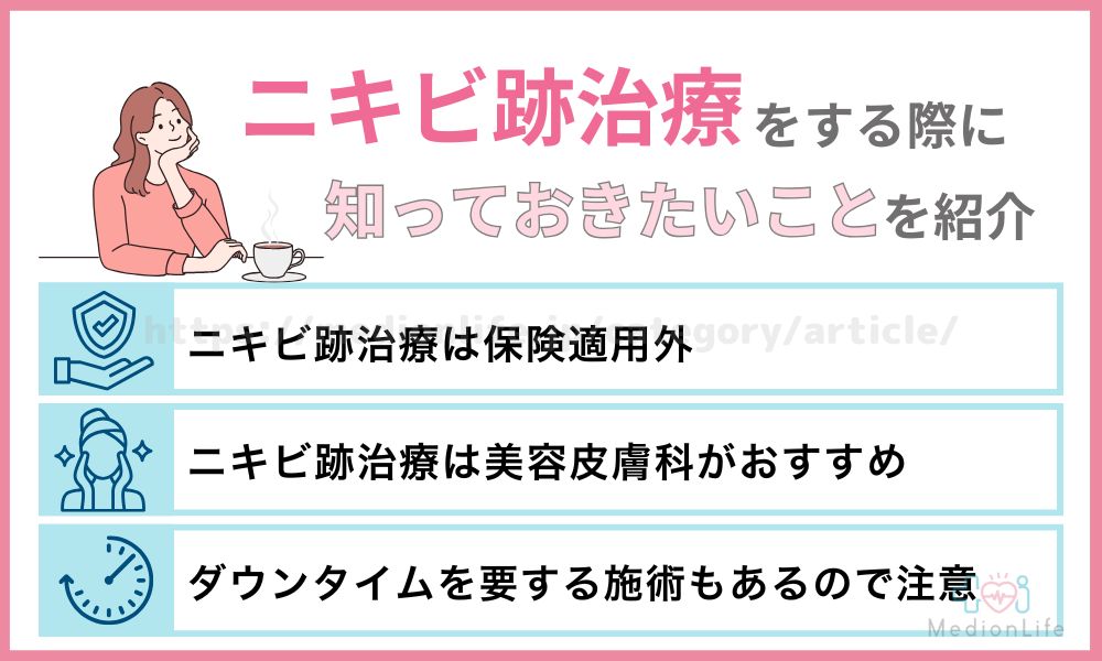 まず初めに、ニキビ跡治療について知っておきたいことを3つ紹介します。