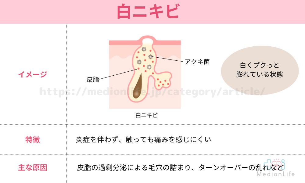 白ニキビは炎症を伴わず、触ってもほとんど痛みがありません