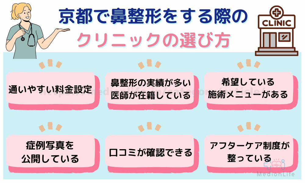 京都には、鼻整形の施術方法やサポート体制が異なる多くのクリニックが存在します。