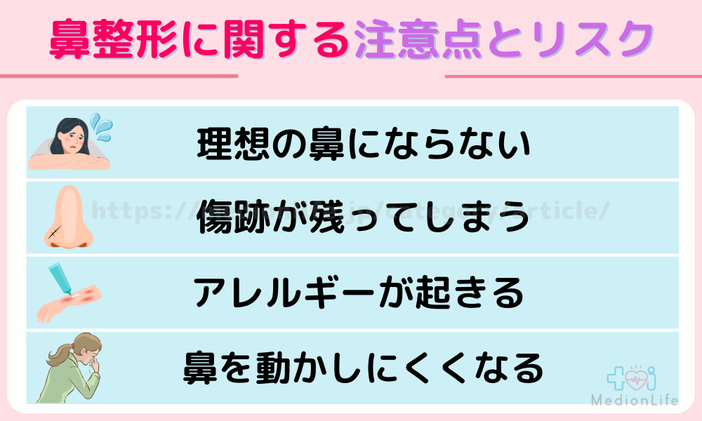 鼻整形には、どの施術にも一定のリスクが伴うため、事前に理解しておくことが大切です。