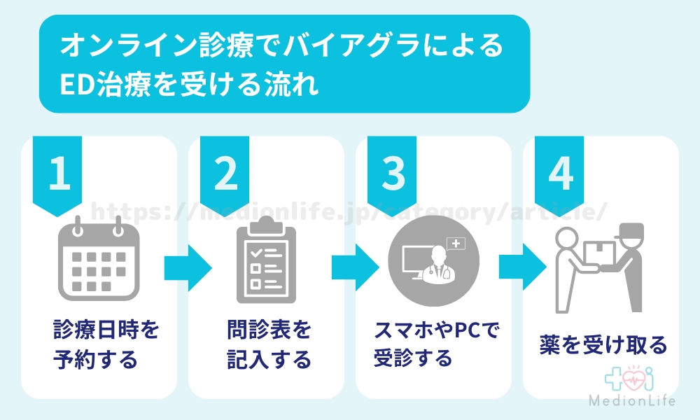 オンライン診療でバイアグラによるED治療を受ける流れ4STEP